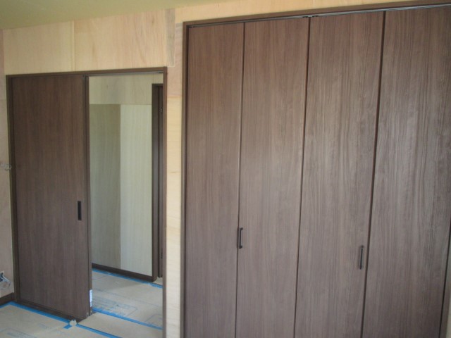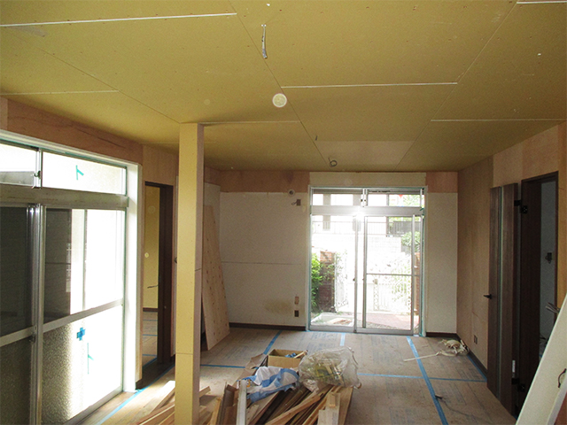 新しい建具が設置され、広いリビングも見えてきました