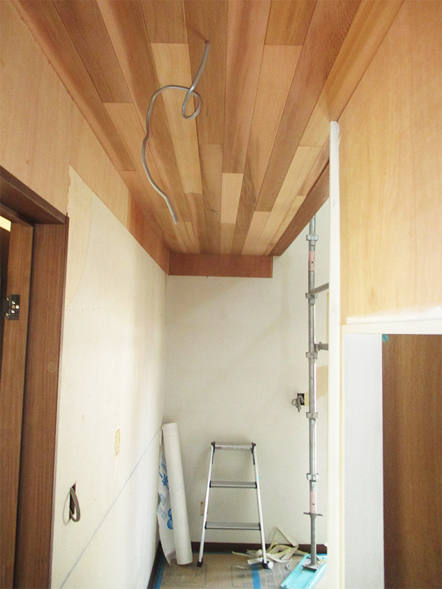 廊下の天井は、ご新築でも人気のレッドシダーを使用しています